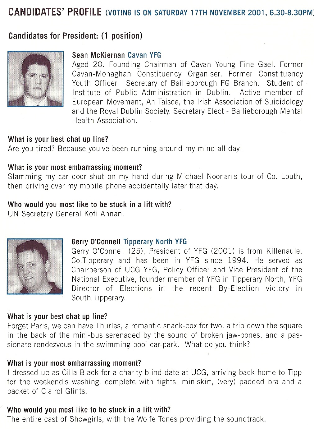 From 2001 Young Fine Gael Conference -Profiles of candidates (includes Lucinda Creightons favourite Chat up line!) » yfgprofile91b