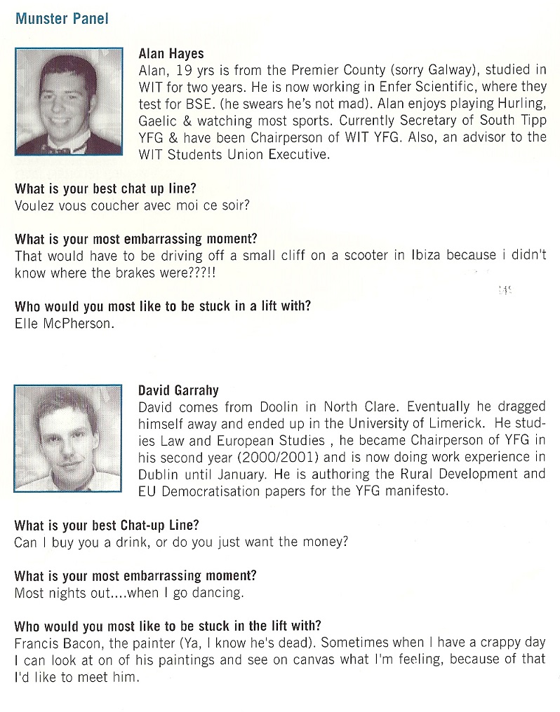 More candidate profiles (including Brendan Griffin) from the 2001 Young Fine Gael Conference » yfgprofile91m3