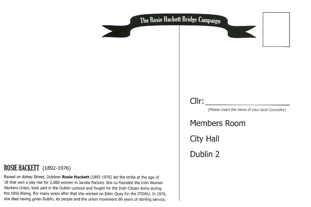 ‘A Bridge for Rosie’ postcard from the Rosie Hackett Bridge Campaign » rhackett2