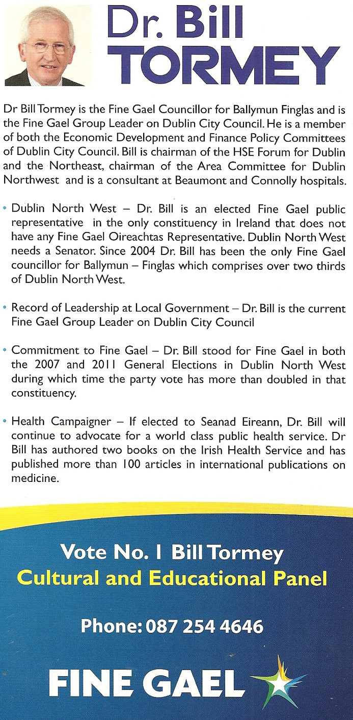 Leaflet from Bill Tormey -Fine Gael -2011 Seanad Elections » btormeyseandb