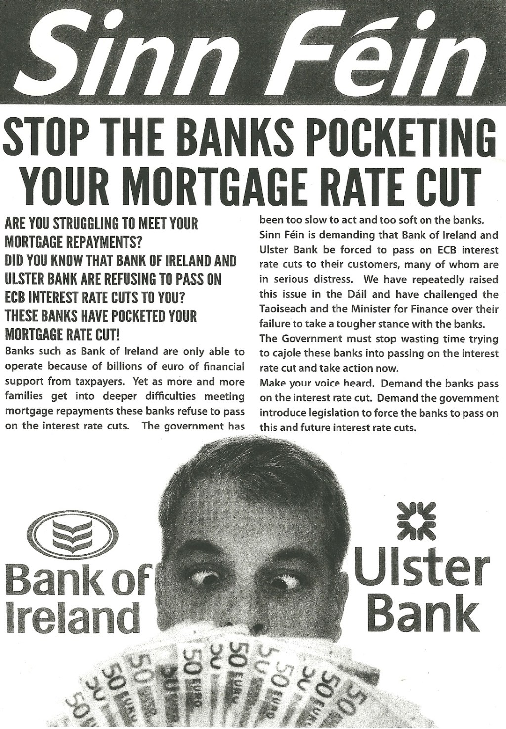 “Stop The Banks Pocketing Your Mortgage Rate Cut” Leaflet from Sinn Fein » sfmortgagerate