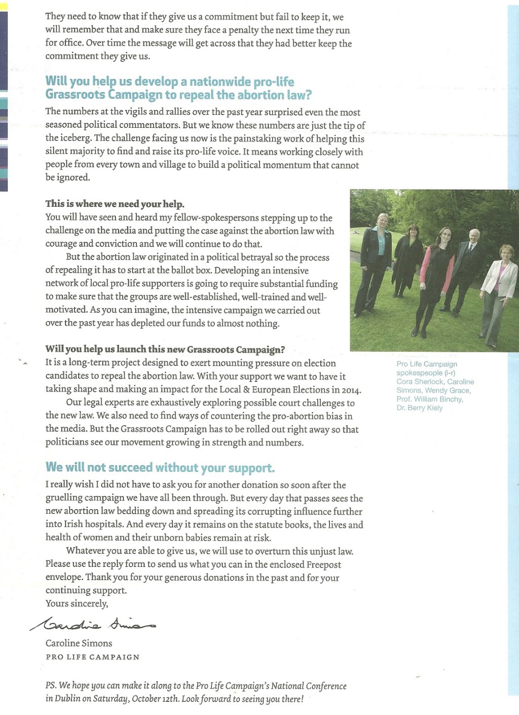 Letter from Caroline Simons to Prolife Campaign supporters about building a Grassroots network for the 2014 European and Local Elections » csimonspl2