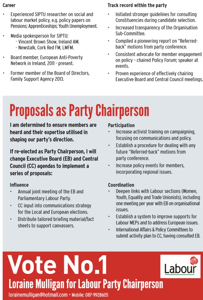 “Strength From Within ….Re-elect Loraine Mulligan Labour Chairperson” -2013 Labour Party Conference » lmulligan2