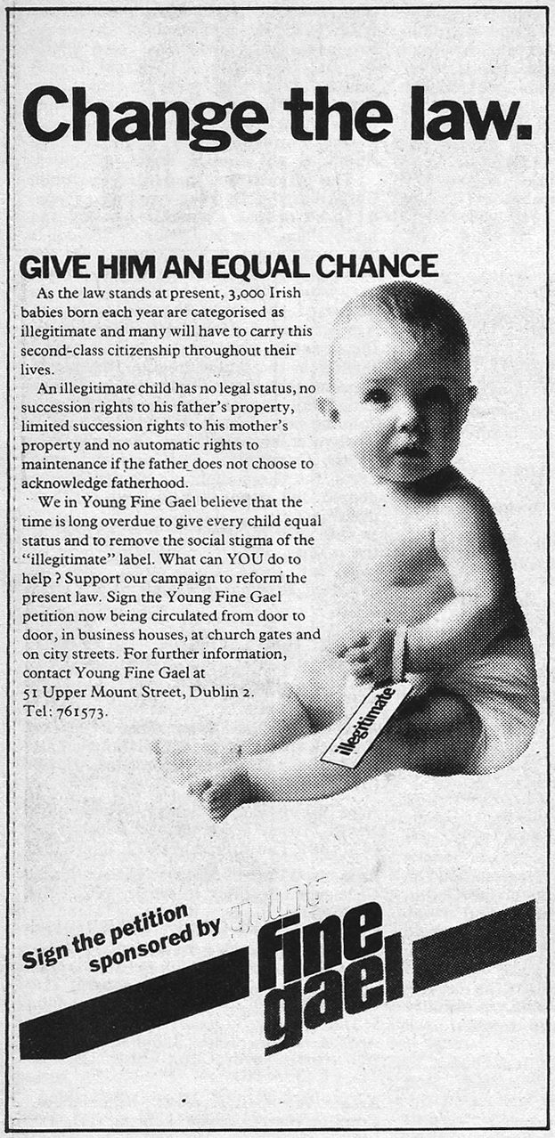 “Change The Law -Give Him An Equal Chance” 1980 Young Fine Gael campaign to give rights to ‘illegitimate’ children » fgidapril80