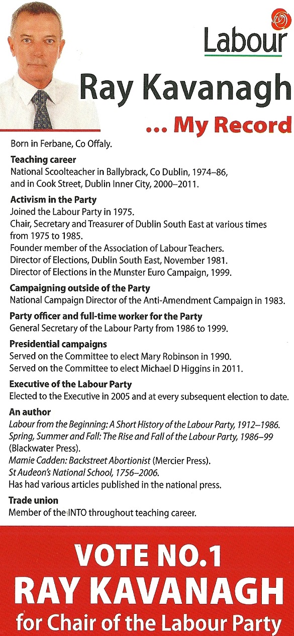 “For Renewal” Ray Kavanagh for Chair of the Labour Party Leaflet -2013 Labour Party Conference » rkavanagh13b
