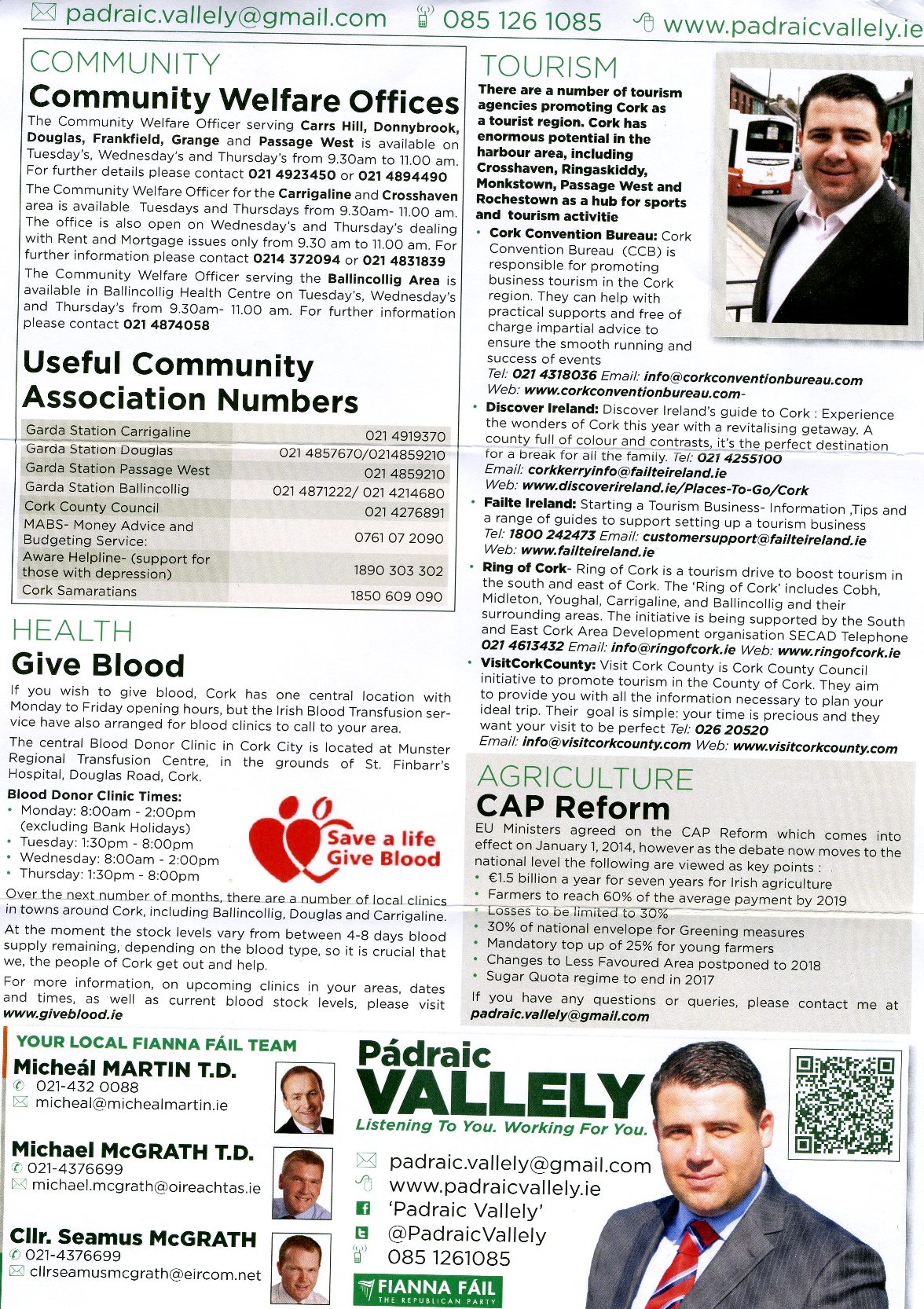 From Summer 2013 a newsletter from Pádraic Vallely, Fianna Fail Local Area Rep for Carrigaline Ballincollig.