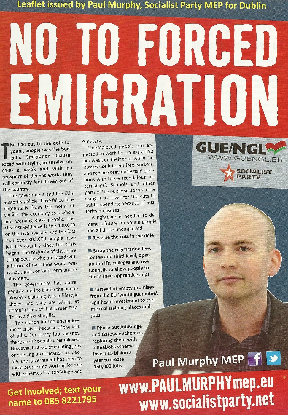 ‘No To Forced Emigration’ leaflet from Paul Murphy MEP -Socialist Party -Dublin » pmurphyemig1