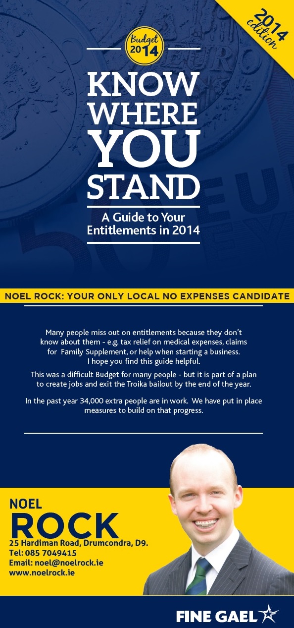 “Budget 2014 Know Where You Stand” leaflet from ‘Noel Rock:Your Only Local No Expenses Candidate’ -Fine Gael -Glasnevin » NRnwys1