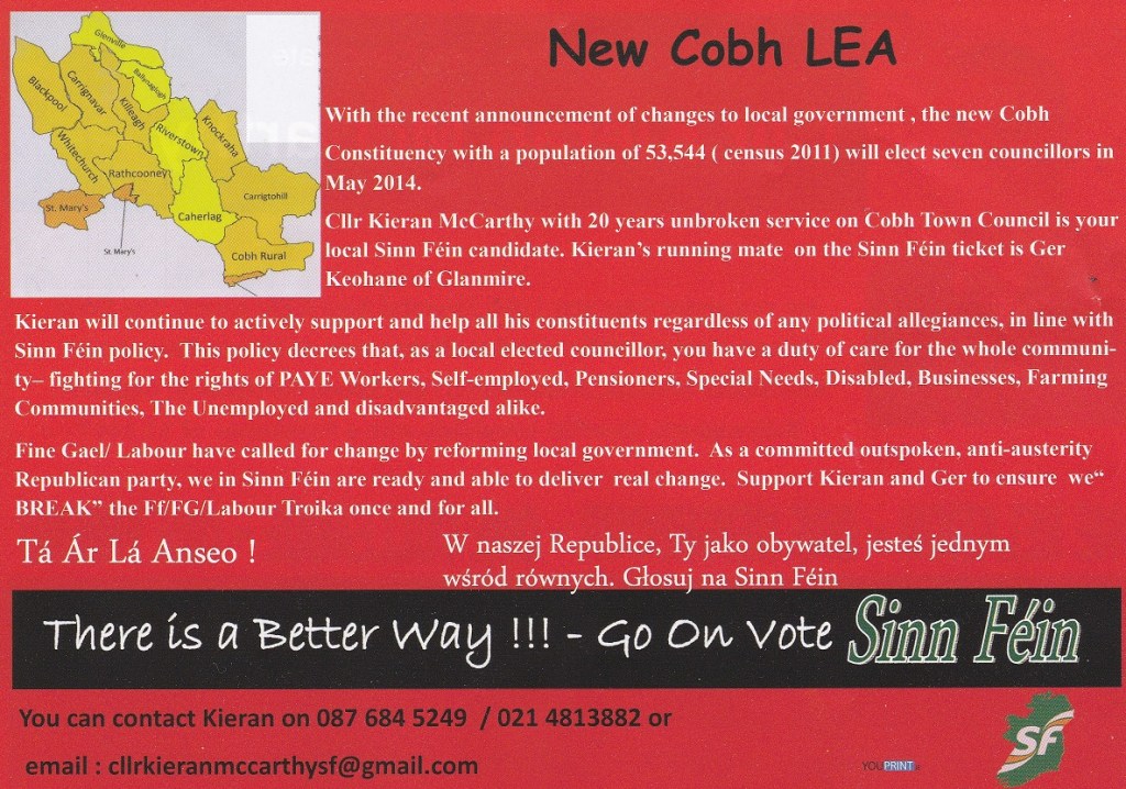 Flyer from Kieran McCarthy – Sinn Fein -Cobh » CobhSF2013b