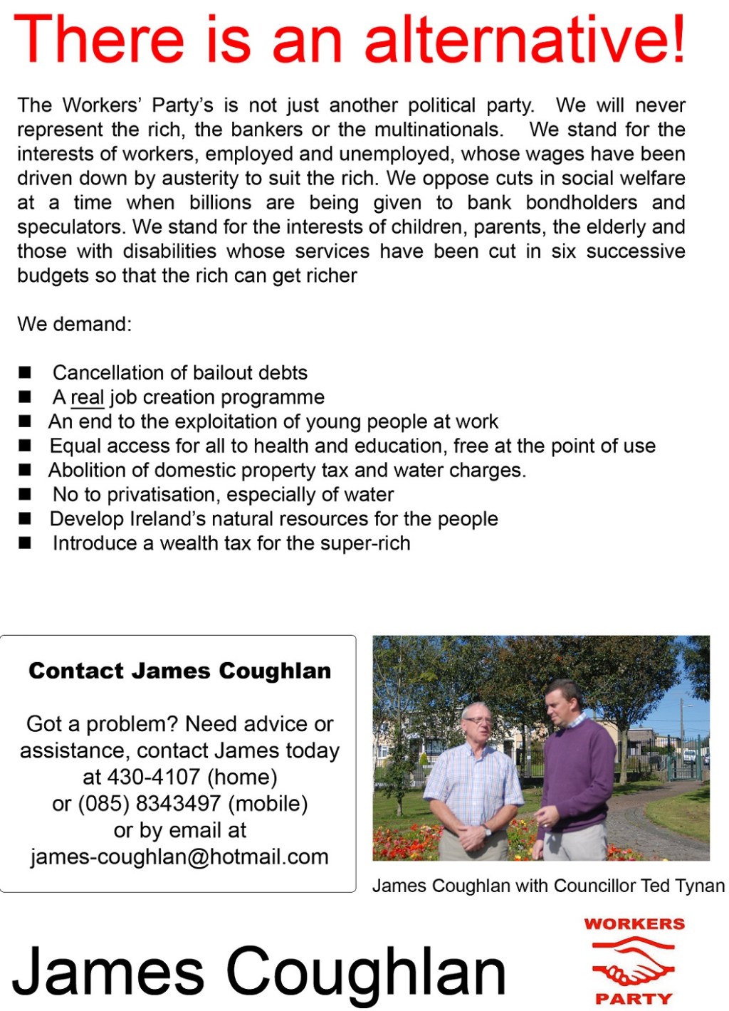 Leaflet introducing James Coughlan -The Workers’ Party -Cork North West -2014 Local Elections » James Coughlan WP Side 2