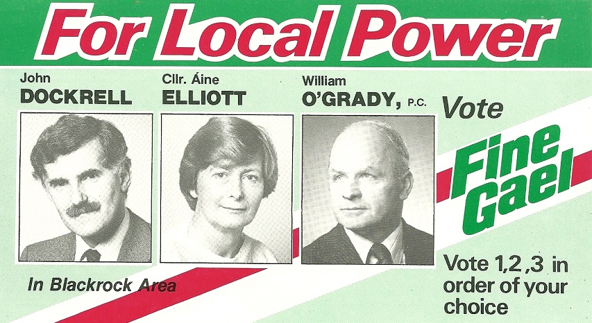 Leaflet for John Dockrell, Aine Elliot, William O’Grady -Fine Gael -Blackrock -1985 Local Elections » fgblackrock85a