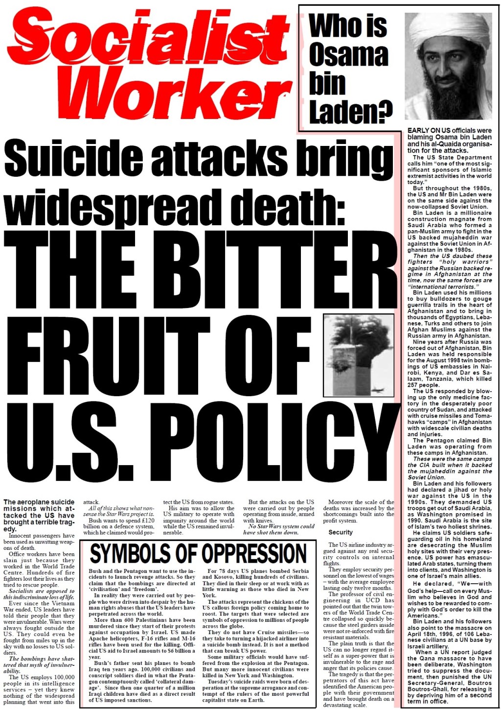 Post 9/11 special two page issue of ‘Socialist Worker ‘ » sw911a