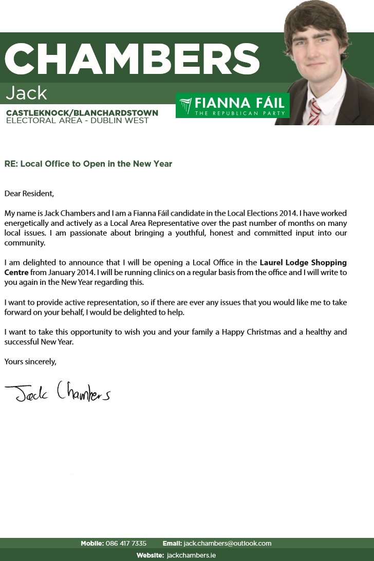 Leaflet from Jack Chambers re the reopening of Brian Lenihan’s constituency office- Fianna Fail-Castleknock/Blanchardstown » jchambersoffice