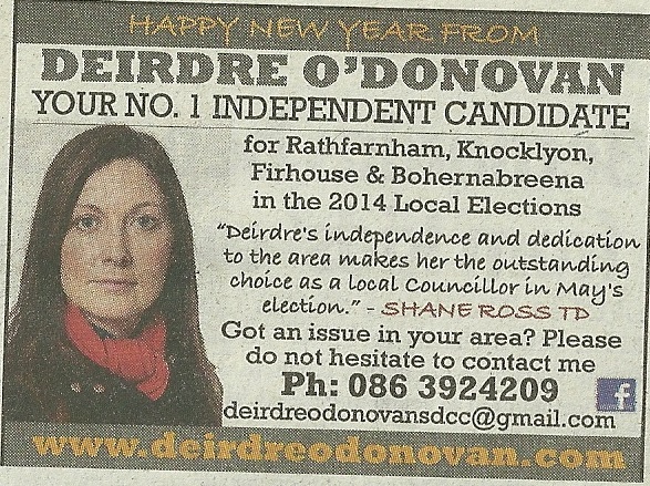 Ad from Deirdre O’Donovan -Independent (Shane Ross endorsed) -Rathfarnham -2014 Local Elections » dodonovanad