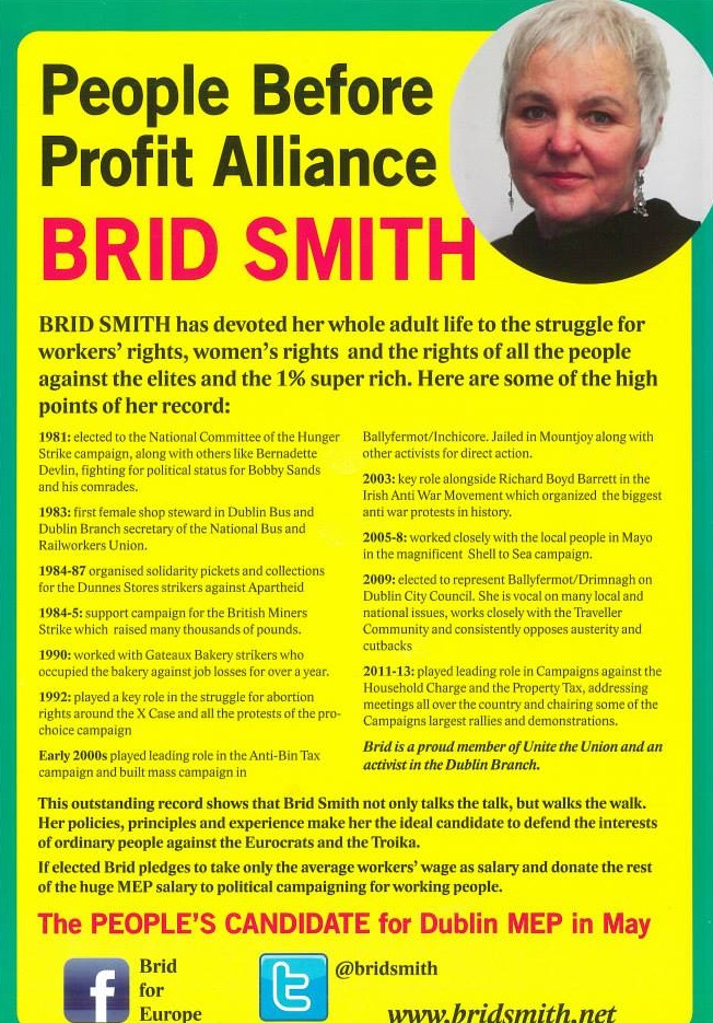 Leaflet introducing Brid Smith- People Before Profit Alliance- 2014 Euro Elections -Dublin » bsmith1