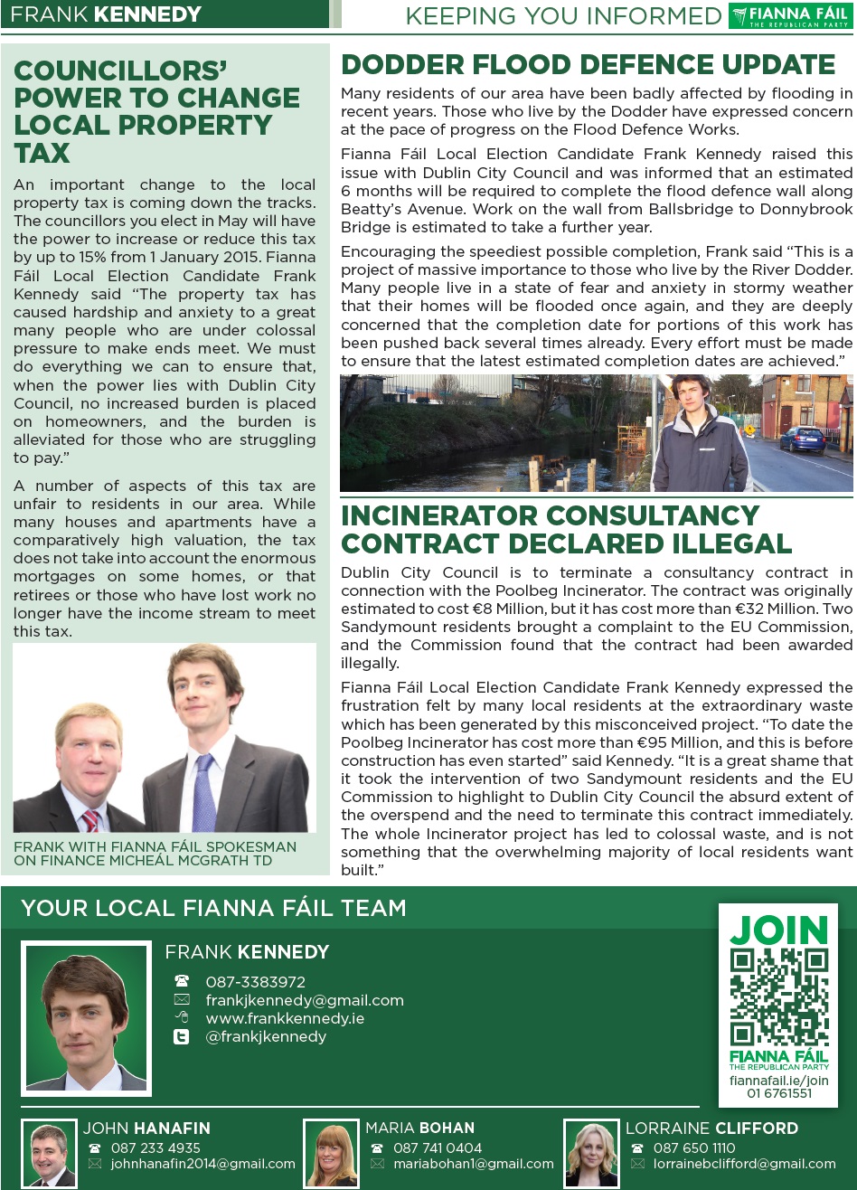 Newsletter from Frank Kennedy -Fianna Fail -Pembroke South Dock -2014 Local Elections » fkennedynl2