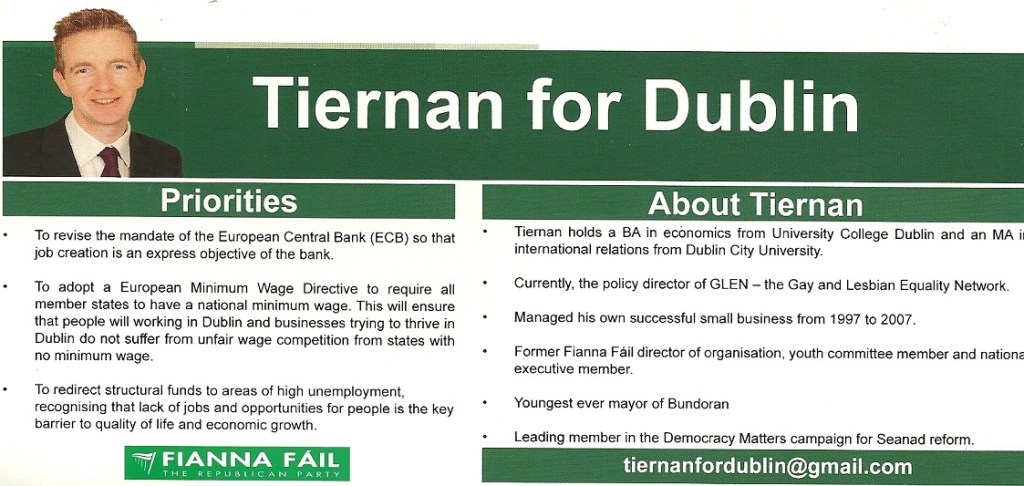 ‘Tiernan for Dublin’ Leaflet from Tiernan Brady – Fianna Fail Dublin European Election Selection Convention » tbrady2