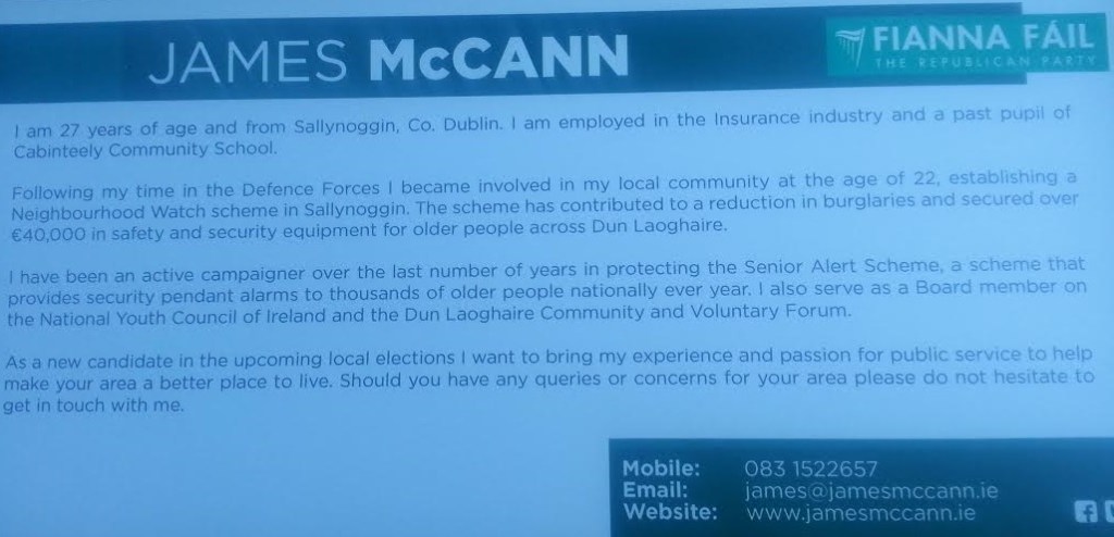 Flyer from James McCann -Fianna Fail -Dun Laoghaire -2014 Local Elections » jmccann2