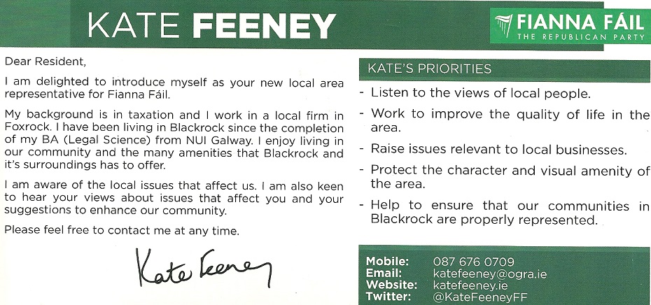 Flyer from Kate Feeney -Fianna Fail -Blackrock -2014 Local Elections » kfeeney2