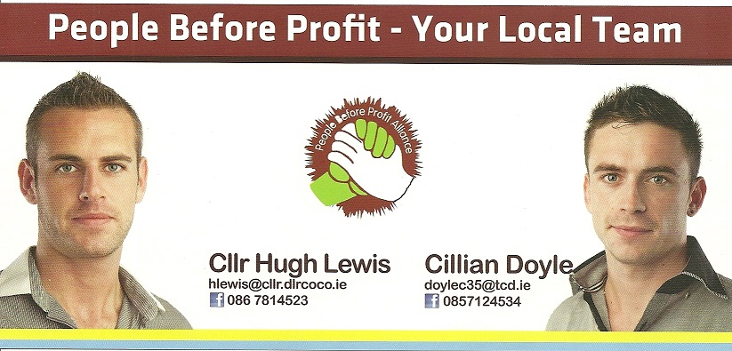 Canvass Card from Hugh Lewis, Cillian Doyle -People Before Profit Alliance- Killiney Shankill -2014 Local Elections » pbptt