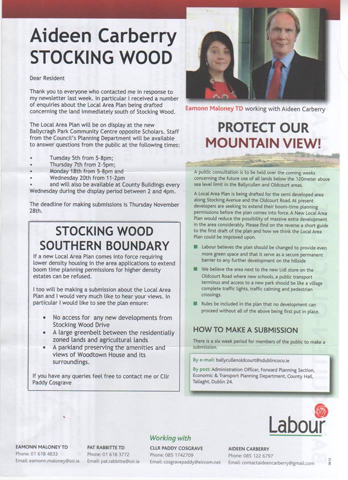 Two newsletters from Aideen Carberry who is running for Labour in the Rathfarnham LEA for a seat on South Dublin County Council.