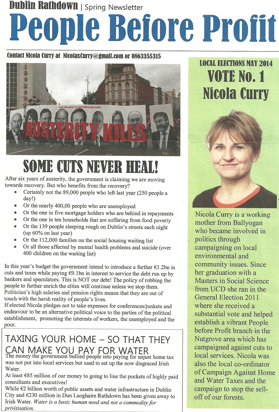 Newsletter from Nicola Curry -People Before Profit -Glencullen Sandyford -2014 Local Elections » ncurrynewsletter