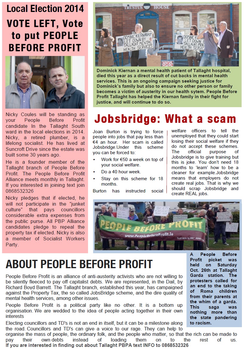 Newsletter from Nicky Coules -People Before Profit -Tallaght South » ncouleswinter2