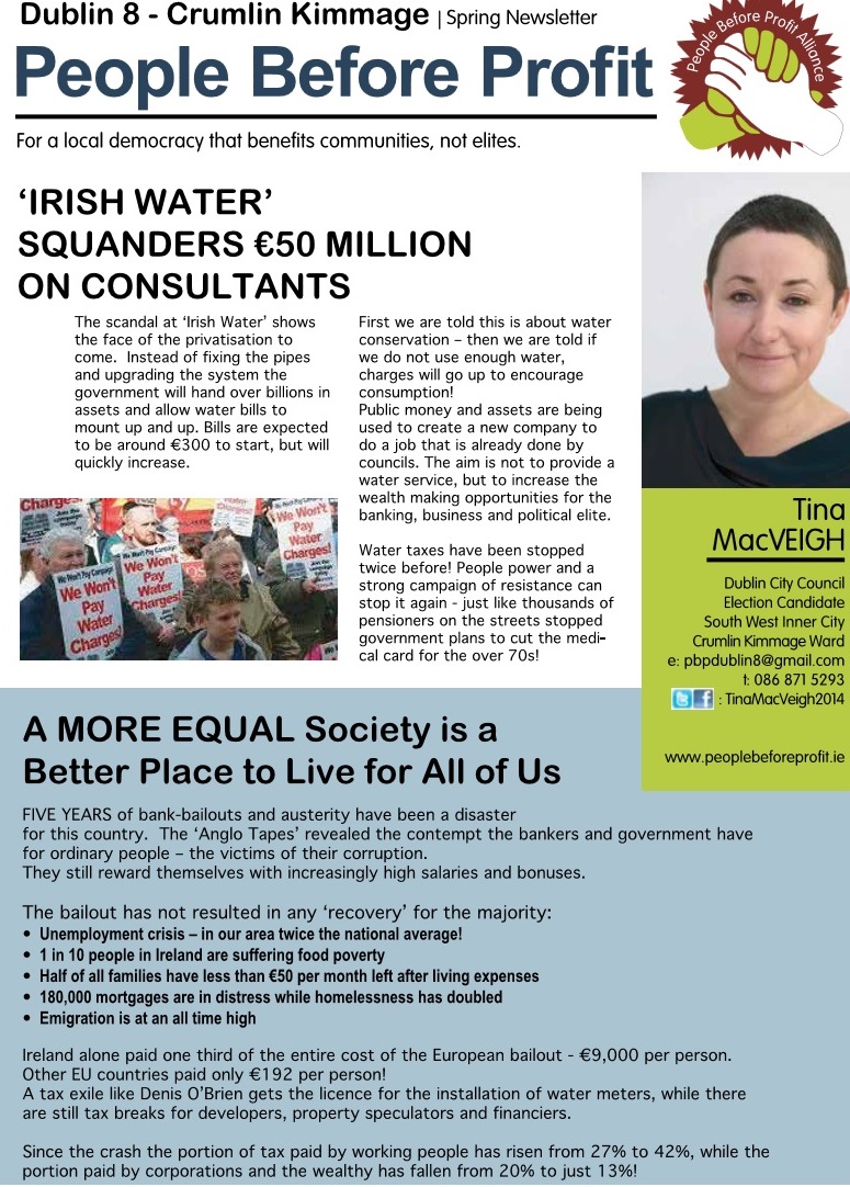 Newsletter from Tina MacVeigh -People Before Profit -Crumlin Kimmage -2014 Local Elections » tmcveigh1