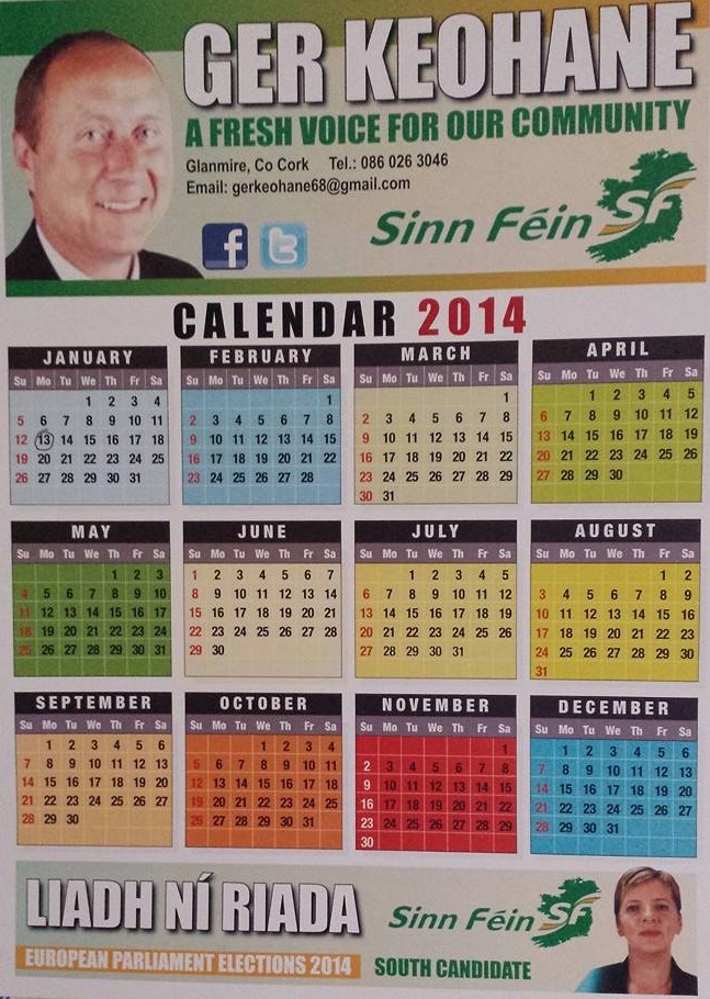 Card and Calendar from Ger Keohane -Sinn Fein -Cobh -2014 Local Elections » gkeohanecalendar