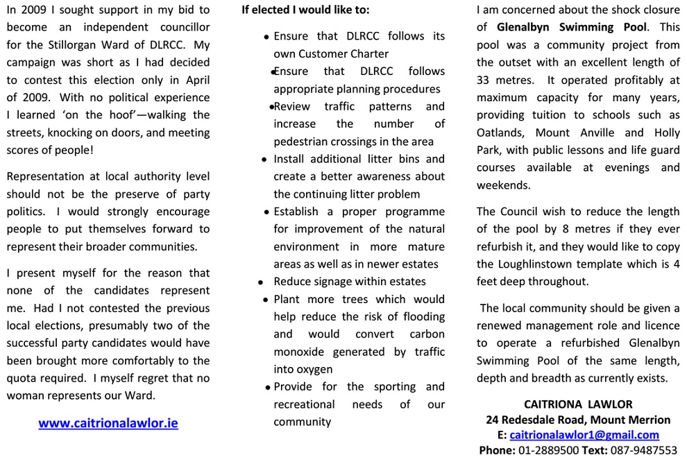 Leaflet and poster from Caitriona Lawlor -Independent -Stillorgan -2014 Local Elections » clawlor2