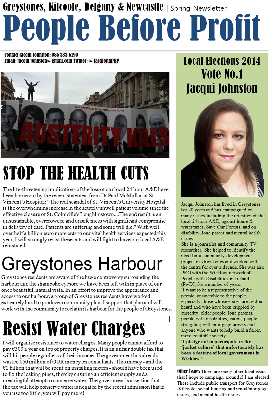 Newsletter from Jacqui Johnston -People Before Profit – Greystones » jjohnston1