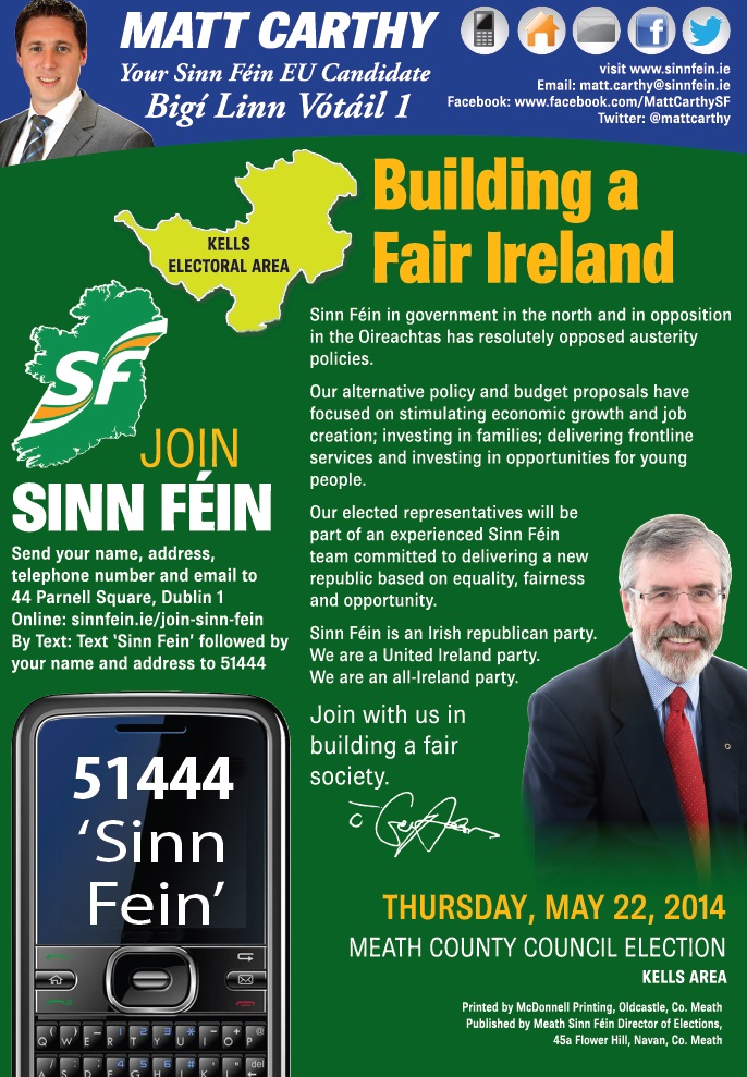 Leaflet from Michael Gallagher -Sinn Fein -Kells -2014 Local Elections » mgallagherkells2