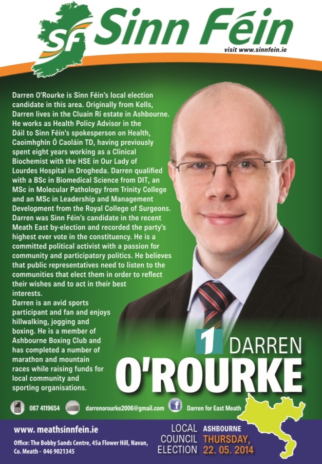 Leaflet from Darren O’Rourke -Sinn Fein – Ashbourne -2014 Local Elections » dorourke1