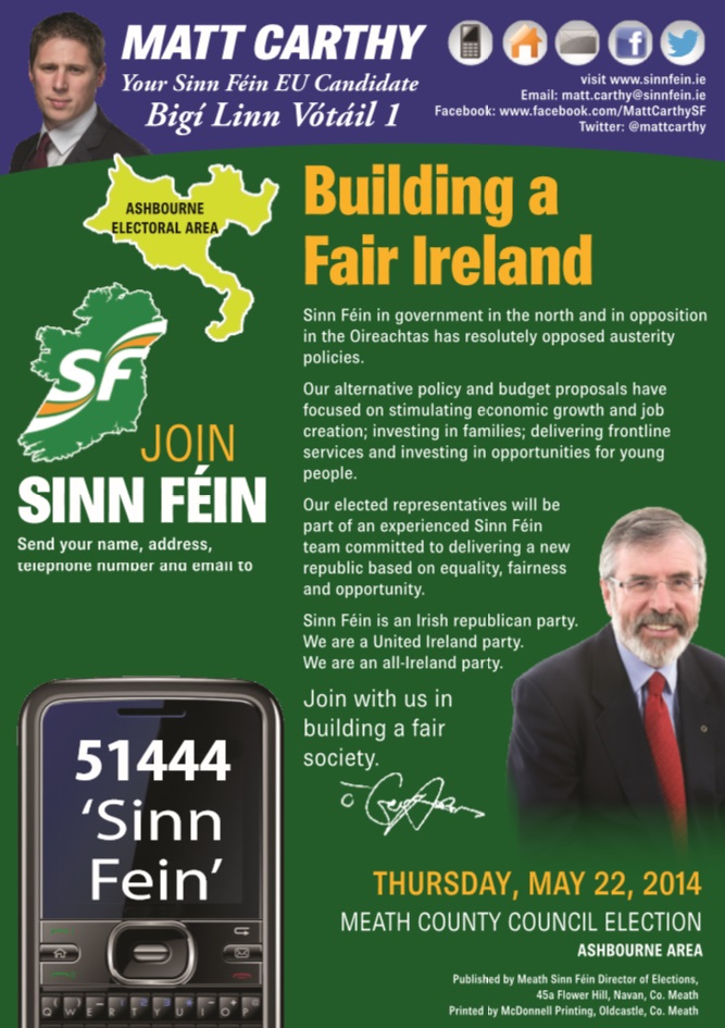 Leaflet from Darren O’Rourke -Sinn Fein – Ashbourne -2014 Local Elections » dorourke2