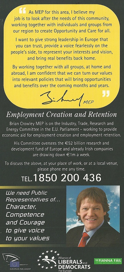 Flyer from Brian Crowley -Fianna Fail -Ireland South » bcrowleyflyer2