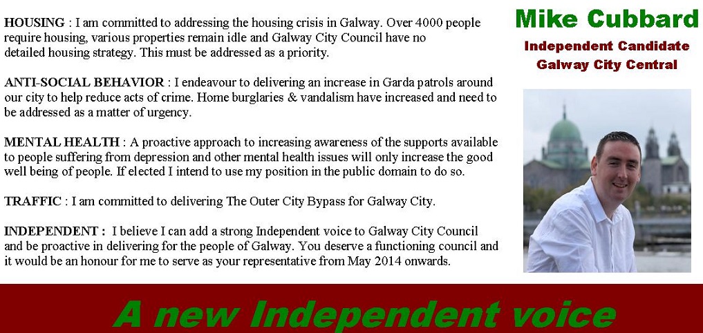 Tags: 2014 Local Elections, Galway, Galway City Central, Independent, Irish Politics, mike cubbard, Politics