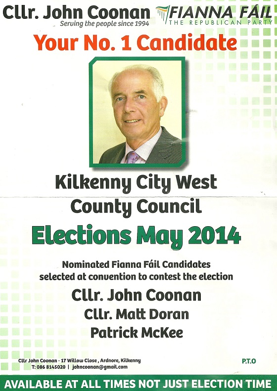 Leaflet from John Coonan -Fianna Fail -Kilkenny West -2014 Local Elections » jcoonan1