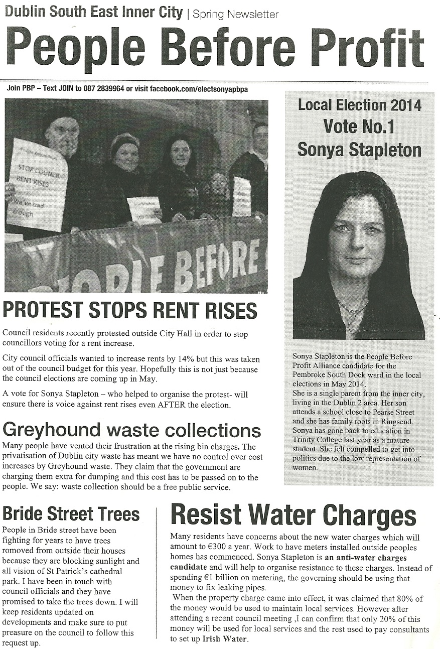 Newsletter from Sonya Stapleton -People Before Profit -Pembroke South Dock -2014 Local Elections » sstapleton1