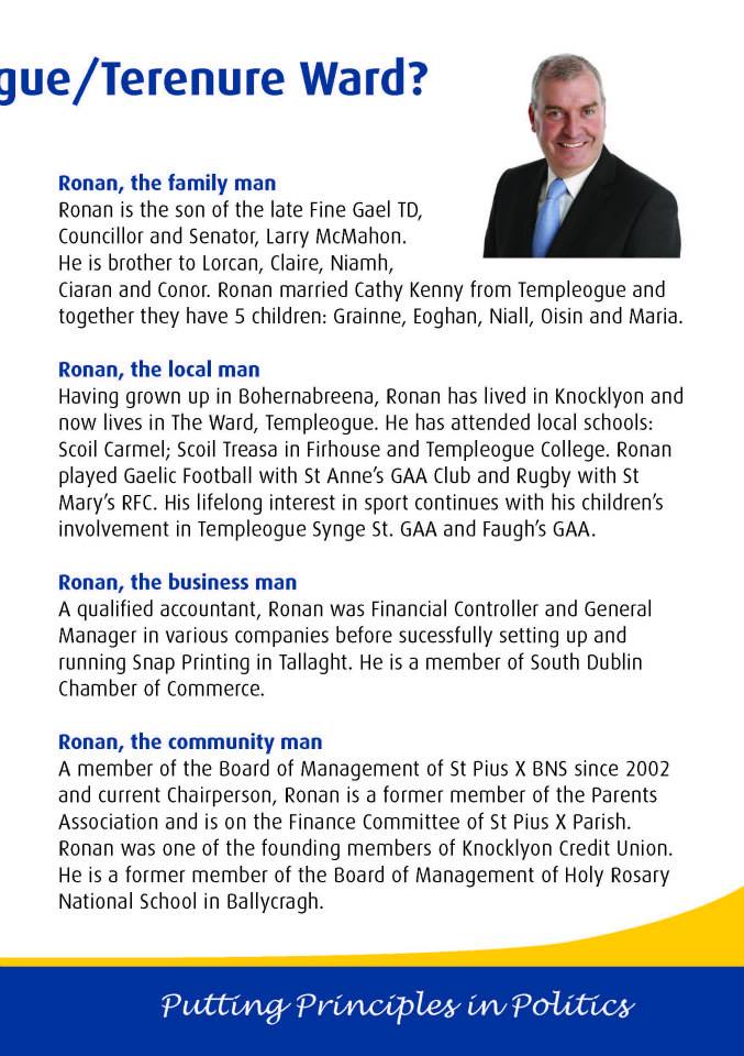Leaflet from Ronan McMahon -Independent Fine Gael -Terenure /Templeogue » rmcmahon2b