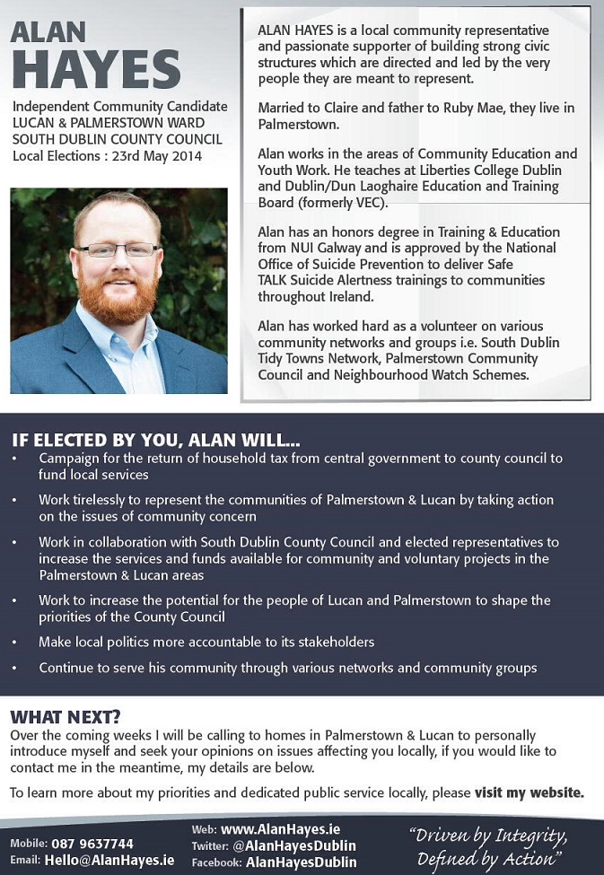Leaflet from Alan Hayes -Independent -Lucan /Palmerstown -2014 Local Elections » alanhayes2