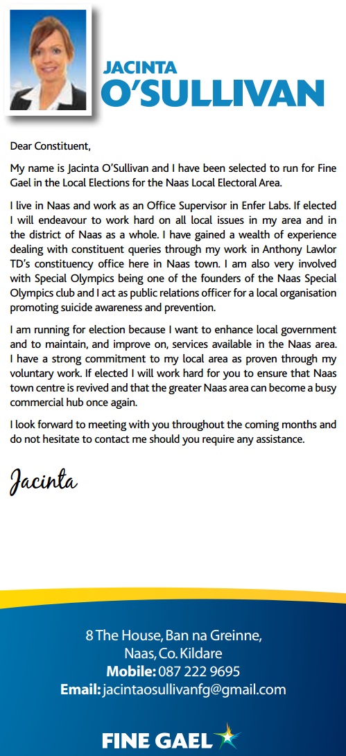 Leaflet from Jacinta O’Sullivan -Fine Gael -Naas -2014 Local Elections » jacintaosullivan2