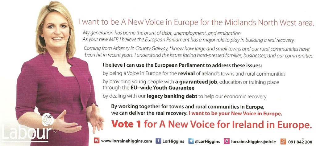Leaflet from Lorraine Higgins -Labour – Midlands North West -2014 European Elections » lhiggins2
