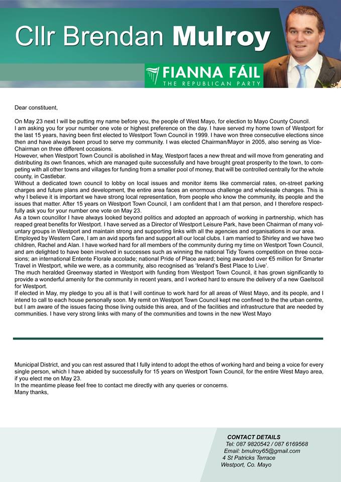 Leaflet from Brendan Mulroy -Fianna Fail -West Mayo -2014 Local Elections » bmulroy1