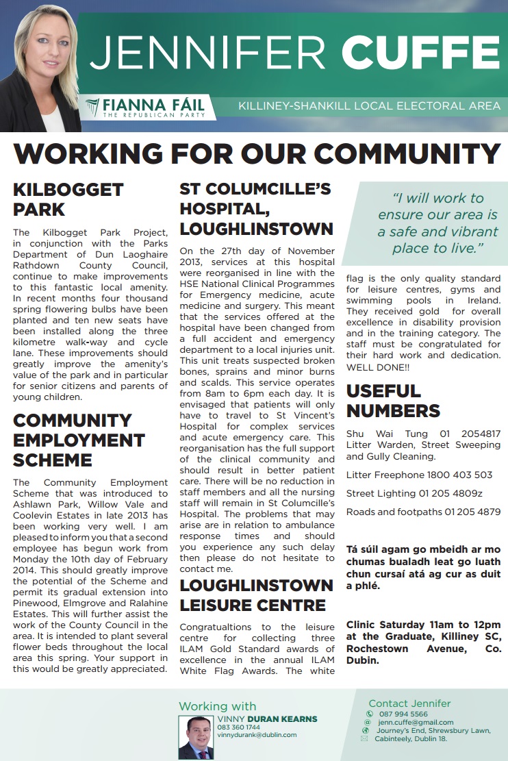 Leaflet advertising a Water Charges Meeting from Jennifer Cuffe -Fianna Fail -Killiney Shankill » jcuffewater2
