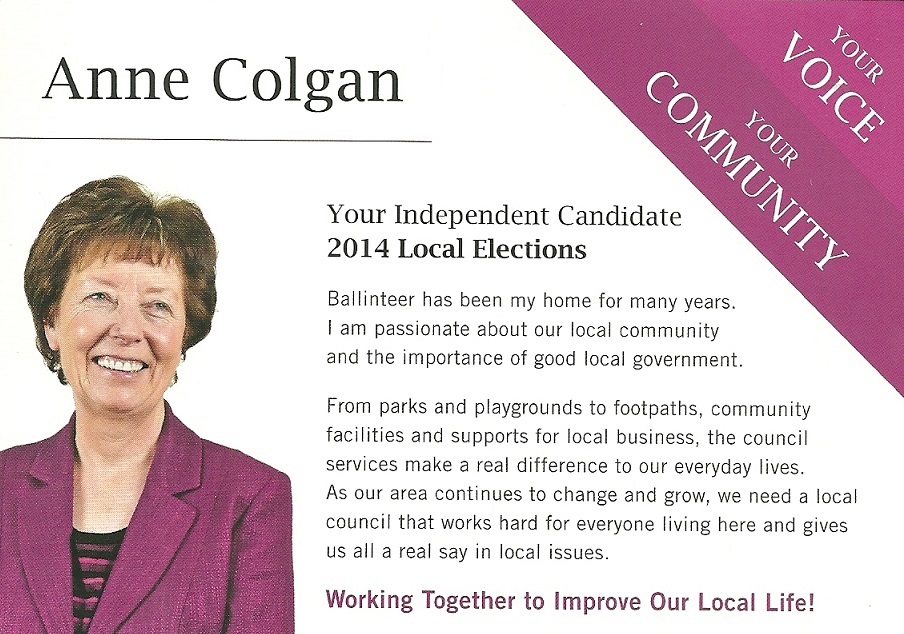 Leaflet from Anne Colgan -Independent -Dundrum -2014 Local Elections » acolgan1