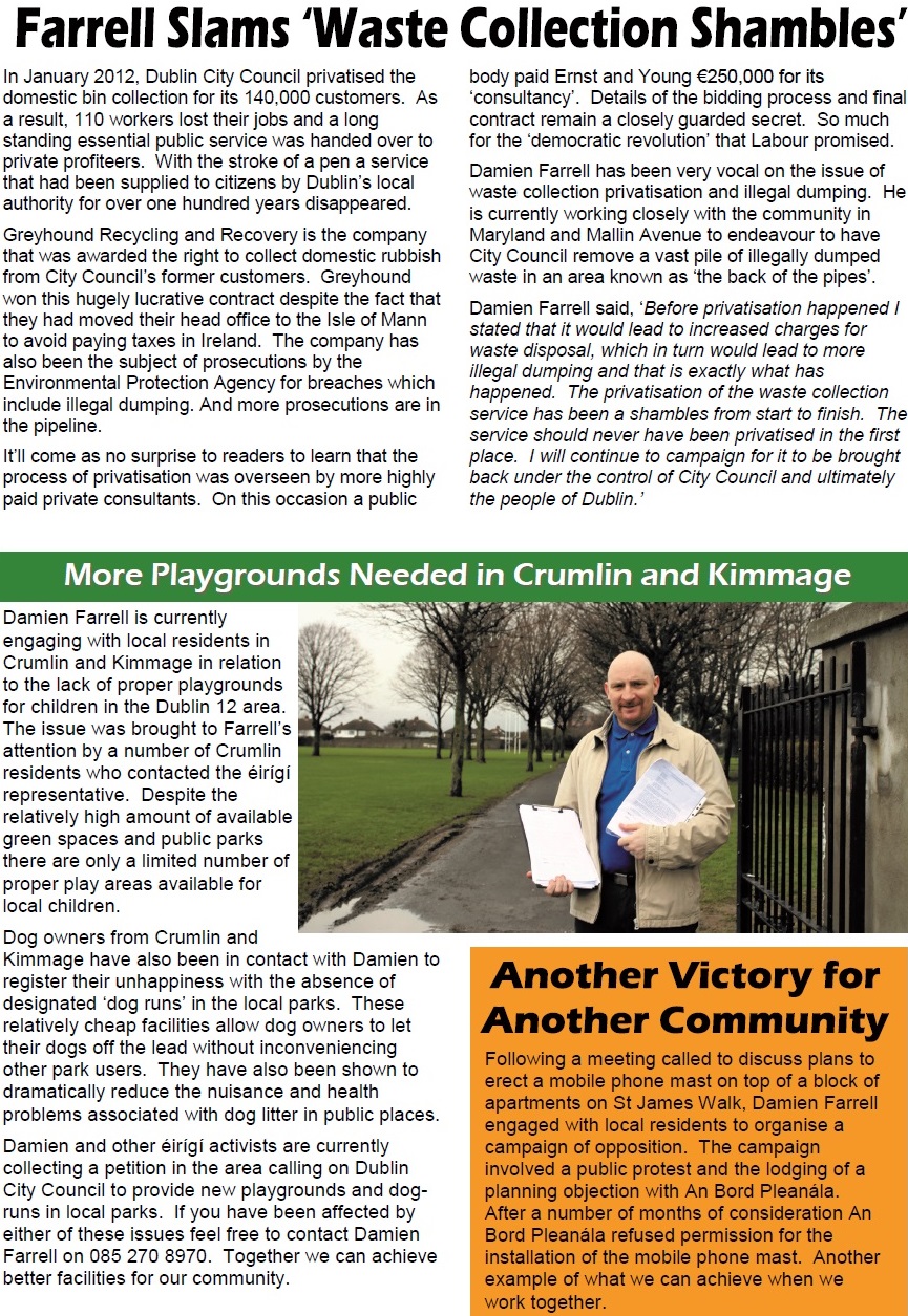 Leaflet from Damien Farrell – éirígí – Crumlin Kimmage -2014 Local Elections » dfarrell3