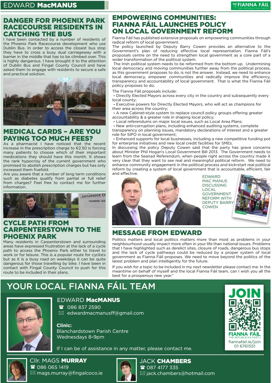 Leaflet from Edward MacManus -Fianna Fail – Castleknock » emcmanus2