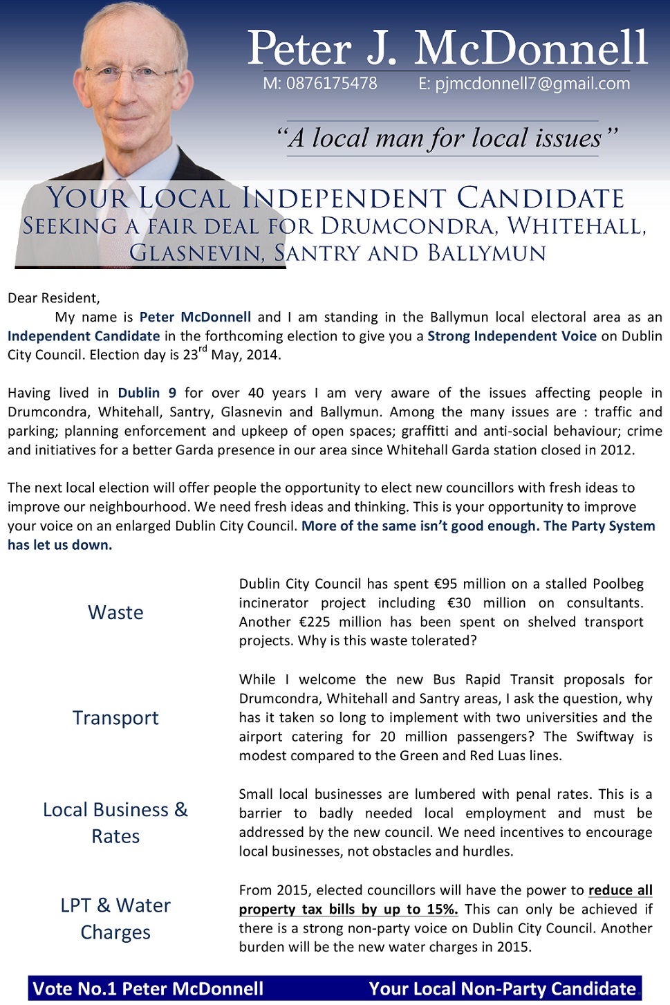Flyer and Leaflet from Peter J. McDonnell -Independent -Ballymun -2014 Local Elections » Microsoft Word – Manifesto 2 24 Feb 14.doc
