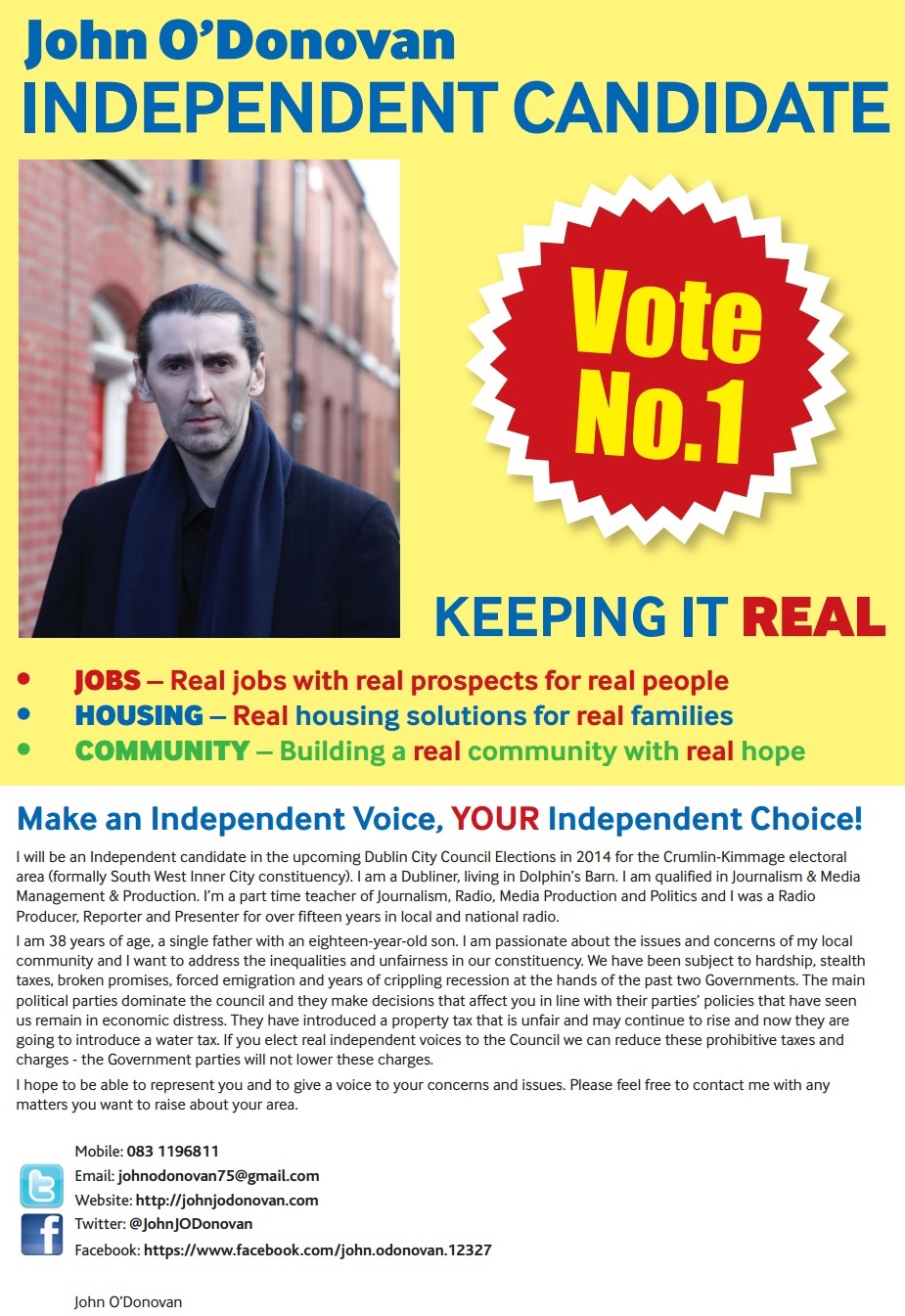 Leaflet from John O’Donovan -Independent – Crumlin Kimmage » jodonovannew1