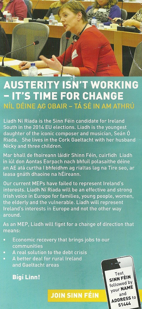 Flyer from Liadh Ní Riada -Sinn Fein -Ireland South -2014 European Elections » lniriada2